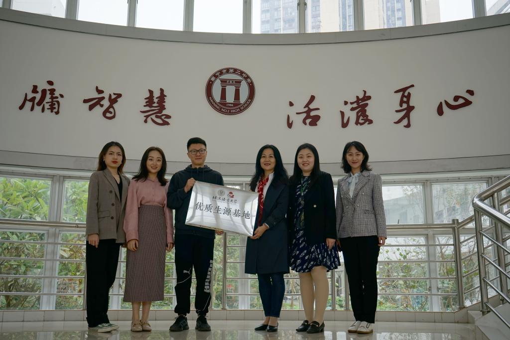 招生宣传组在南宁市第二中学也开展了“优质生源基地”签约及挂牌活动。在南宁市第八中学进行了考察调研,并参观了学校校史馆。在与两校老师的交流中,招生宣传组对南宁市的生源情况有了更多了解,也对学生能够关注北语、报考北语表示了欢迎。