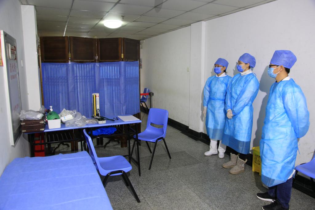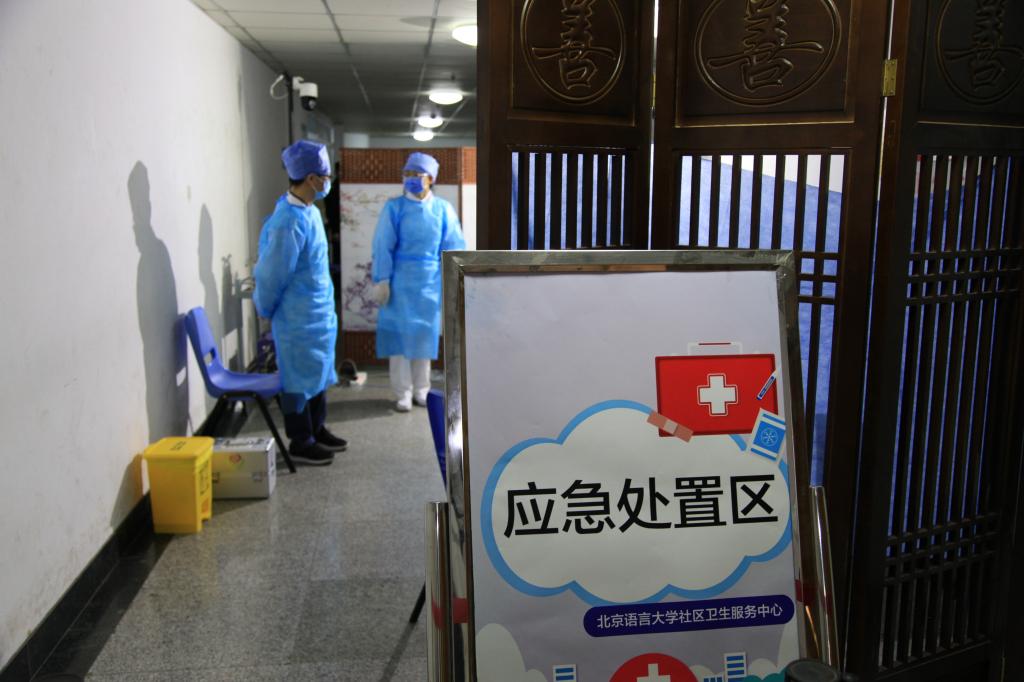 旁边单独设置的应急处置区内,放有诊床、诊椅及必要的抢救物品,医护人员随时待命。受种人员进入留观区观察30分钟,无不适症状即可离开接种点,出口处工作人员核实离开时间。