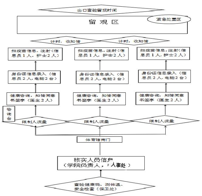 根据选址标准和建设标准,学校此次将逸夫体育馆设为工作场地,通过合理规划被划分为侯种区、签署知情同意书区、信息登记区、接种区、留观区、应急处置区和冷链区,各区标识清晰、相对独立,保证接种流程安全有序。