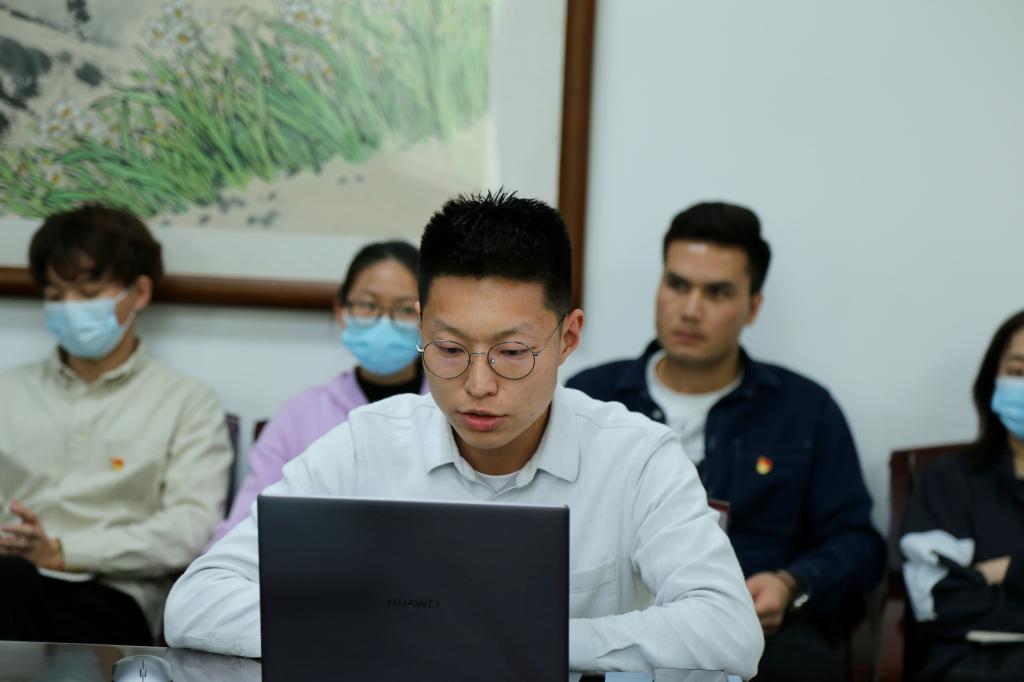 党支部成员们结合自身学习生活分别就“如何传承革命先烈精神”发表了学习感受,有很多同学还向大家生动地讲述了自己家乡的红色故事。杨舵同学向大家讲述了自己太姥爷和太姥姥与侵华日军英勇斗争的故事;周琛同学提到了自己高中母校康杰中学命名来自于嘉康杰烈士;阿不都同学介绍了在党的领导下,自己家乡乌鲁木齐这几年发生的巨大变化,很多故事感人至深。同学们纷纷表示,如果没有老一辈党员的奋斗,自己是不可能见证到家乡如此快速的发展,因此更应该珍惜来之不易的今天,将革命先烈的奋斗精神传承下去,为实现中华民族的伟大复兴和中国梦贡献自己的力量。在讨论中,多位党员谈到,今年是中国共产党建党一百周年,是“十四五”规划开局之年,也是实现第二个百年目标的起步之年,中国正面临着“百年未有之大变局”,作为在北语学习的国际政治、新闻专业的研究生,更应该学好专业知识,增强专业技能和本领,将所学知识运用到今后的工作中,为祖国新时代的外交、新闻事业贡献自己的力量。