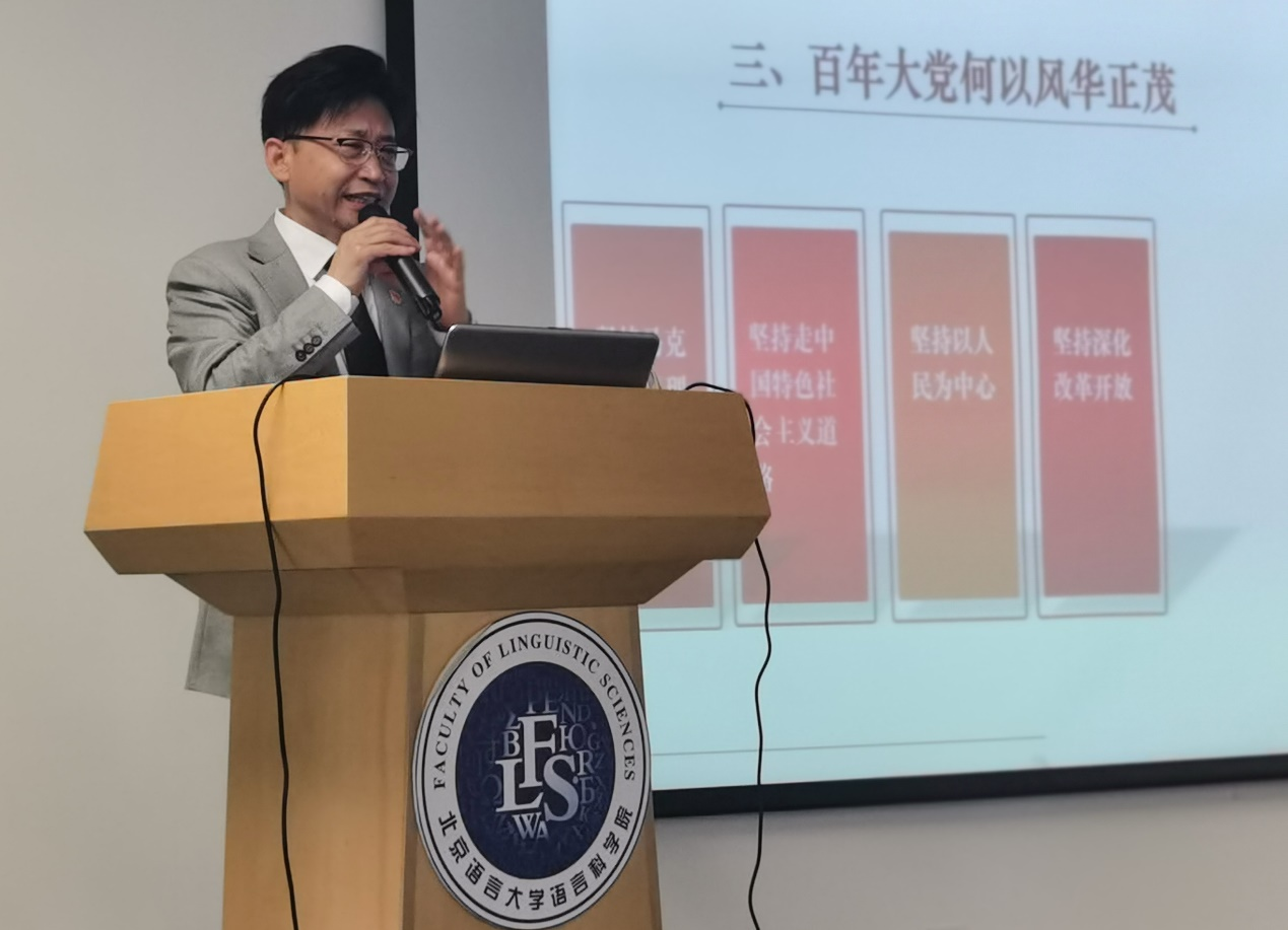 4月29日,学校机关党委党史学习教育专题讲座在综合楼1211会议室举行。此次讲座的主题为:“百年风华正茂时——学党史、悟思想”,由中国人民大学马克思主义学院教授、法学博士、博士生导师王海军担任主讲人。王海军教授从“历史是最好的教科书”“中国共产党的百年辉煌”“百年大党何以风华正茂”“未来的展望与挑战”四个方面回顾了中国共产党的百年历程,阐述了党史学习教育的重大意义。机关党委委员、机关各支部委员代表、党员代表和外国语学部党委委员、行政教工党支部党员代表参加了此次专题讲座。