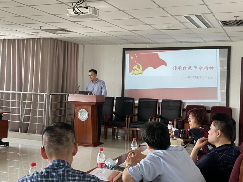 重温党的光辉历史和精神财富,传承红色革命精神,是激励我们不断前进的不竭动力。5月17日下午,我校第三理论学习中心组在综合楼707举行“传承红色革命精神”主题党史学习教育,主讲和讨论相结合,知识讲解和情感升华相结合,形式新颖,成员讨论热烈。