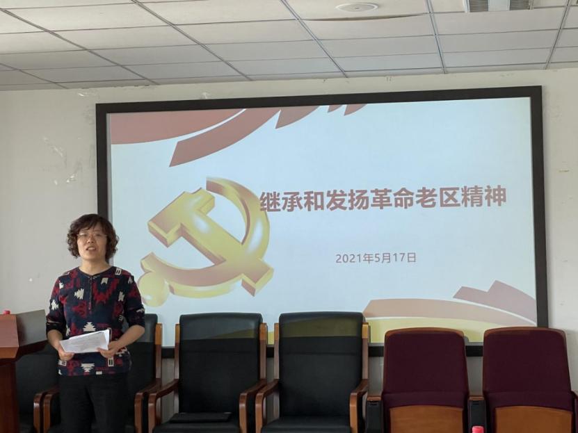 科研处刘志敬以“继承和发扬革命老区精神”为题,对老区精神的定义、内涵和现实意义进行了解读,并对继承和发扬老区精神的重要意义进行了说明。马克思主义学院丁文阁、教务处王瑞烽和学生处张洋分别分享了自己对老区的认识和感受,并对老区精神在新民主主义革命中发挥的重大作用进行了讨论。