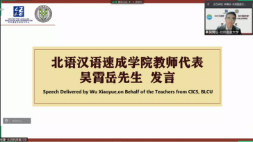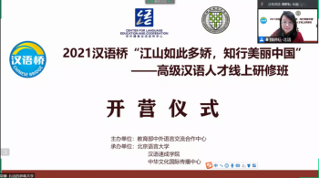 来自玛希隆大学的张岚茵学员在讲话中说:“听到这次研修的消息,我和同学们都非常激动和兴奋,课程的内容非常丰富,非常有趣,我们都想报名参加这个项目。北京语言大学在泰国非常有名,泰国很多知名的汉语人才都是从这个学校毕业,能够得到北语的专家、老师的指导对我们来说是一个非常珍贵的经历。”迦太基大学的杨夕学员和马哈沙拉坎大学李芳晶学员在各自的讲话中都表示了对这次研修班学习和体验活动的深切期待。本次高级汉语人才线上研修班为教育部中外语言交流合作中心主办的“汉语桥”线上团组交流项目,由汉语速成学院和中华文化国际传播中心共同组成的优秀设计、教学和管理团队来担当完成,根据学员的情况量身定制,以全新的主题推出全新的内容,引导学员行走中国美丽河山,开启了又一次人文感悟旅程。