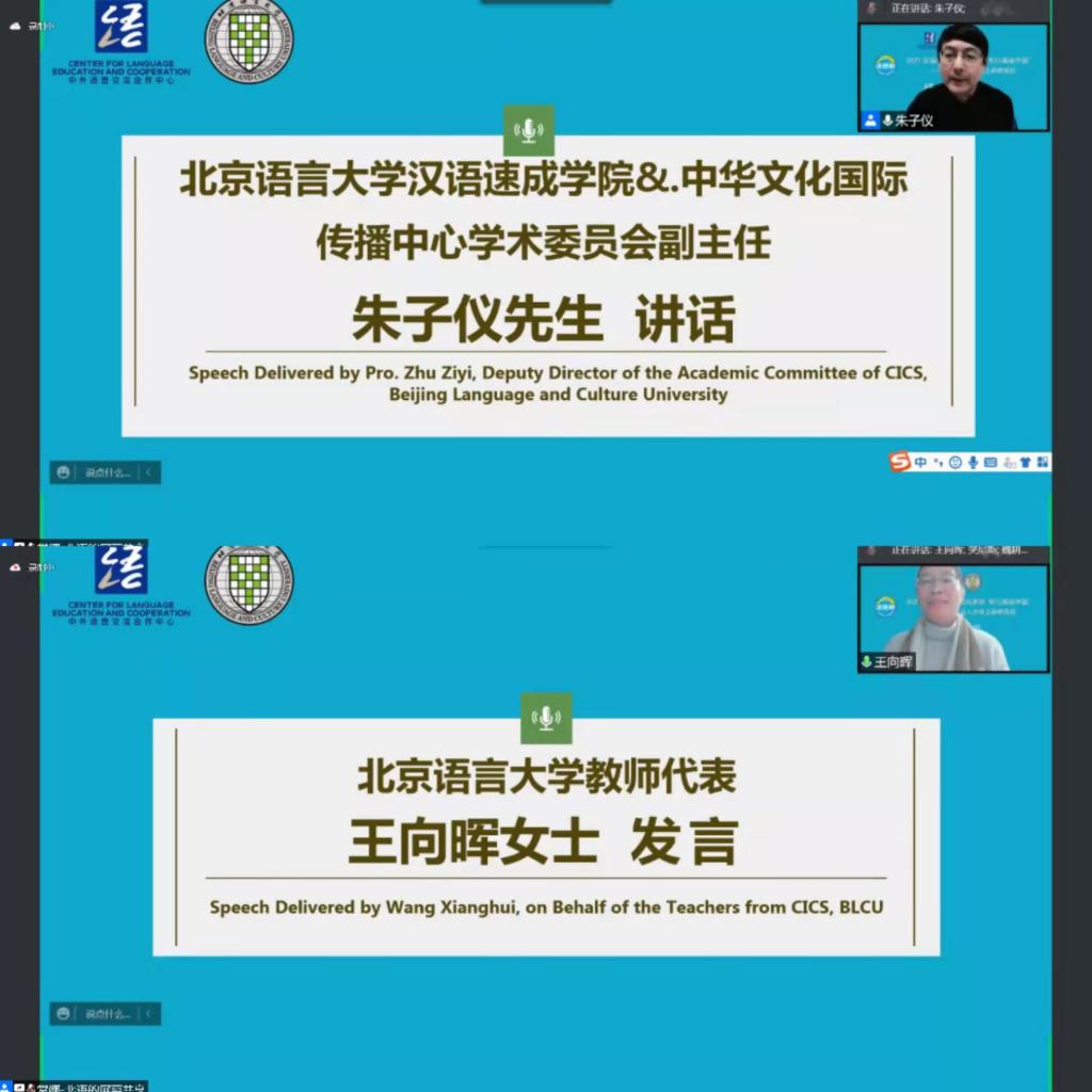 汉语速成学院和中华文化国际传播中心学术委员会副主任朱子仪在致辞中对研修班教学进行了总结,指出此次研修班课程集知识性、趣味性、直观性、互动性于一体,最大限度满足了学员的需求和关切,取得了非常显著的教学效果,使整个教学过程在促进学生深度体验的同时,又不断深化对中国广阔地域的认识以及历史文化和当代发展的理解。他表示,“相信参加这次线上研修班的同学们会珍惜这次难忘的经历,珍惜你们取得的收获,并会把在这里学到的知识和得到的感悟与你们的家人和朋友分享,并在未来,为推动世界多元文化交流互鉴做出你们的贡献。” 北语教师代表王向晖期待同学们日后能来到北京语言大学,系统学习语言和文化知识,深入了解当代中国社会与文化,分享和交流彼此的文化精髓。