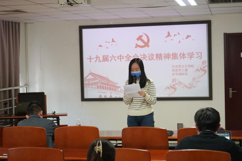 在杜教授的领学报告后,与会的老师们紧密联系思想和工作实际,深入交流学习体会。外国语学部英语学院辅导员高睿璇老师认为在杜老师的带领学习下,对政治站位、历史方位和自我定位都有了更加全面清晰的认知,作为一名一线辅导员英做好思政引领,继续增强做到“两个维护”的思想自觉、政治自觉和行动自觉,把有限的生命投入到无限的追求真理的过程中去,继续贯彻落实立德树人的根本任务,为党育人,为国育才。人文社会科学学部辅导员曹文潇老师表示对《决议》中提及百年奋斗的五个历史意义有很深的感触,她认为那我们的党总是会在各个的历史阶段去不停地回顾过往历史,这体现的是一种自我革新精神,是一种刀口向内刮骨疗毒的勇气。如今我们正站在向着第二个百年奋斗的新起点上,我们更加需要去回望过往的奋斗路,同时眺望眼前的奋进路。武装部军事教研室钦浩老师结合自身工作和教学经历,谈到现在的青年学生是从小接受了比较完整的主旋律正能量的教育,对他们继续用传统的教育引领教学方式是无法满足他们的需求,应该直面他们的困惑和提出的问题,注重思想的时代特征,并且与社会发展紧密结合,加强思想政治教育的时效性。
