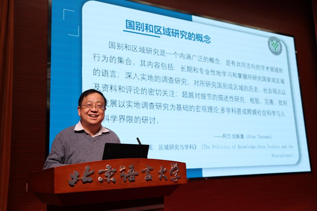 国别和区域研究院院长罗林教授以“从‘大国之学’到‘大学之学’,高校国别和区域研究的使命与担当”为题进行分享。他从国别和区域研究的相关概念、学科内涵、学科特点和学科化实践等问题入手,结合生动的事例,介绍了国别和区域研究院在学科建设、人才培养、资政服务和国际交流等方面所做的重要工作,以及在建成“三刊一网”学术阵地、覆盖170多所院校的480多家基地(中心)、汇聚万名研究员形成学术共同体上发挥的重要影响力,展现了以国家战略为指引、以服务国家为己任的大学使命和学术担当。