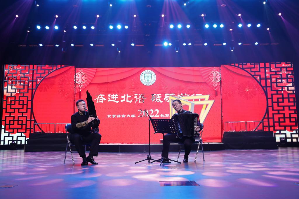 12月30日晚,“奋进北语 砥砺前行”,北京语言大学2022年教职工新年晚会在梧桐会堂精彩上演。校党委书记倪海东、校长刘利、校党委副书记魏晖、校党委副书记、纪委书记马贵生、副校长张宝钧、副校长黄益方以及各单位负责人到场参加,与全校师生共迎新年。