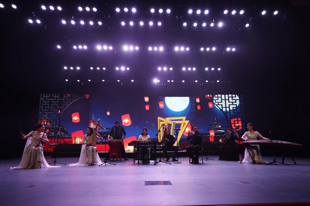 艺术学院演绎的民族室内乐《夜深沉》积淀历史文化,乐声悠扬,奏响铿锵有力的时代和弦。图书馆和后勤服务集团表演的舞蹈《万疆》,诉说满腔爱国情怀,唱响了昂扬奋进的中国旋律。