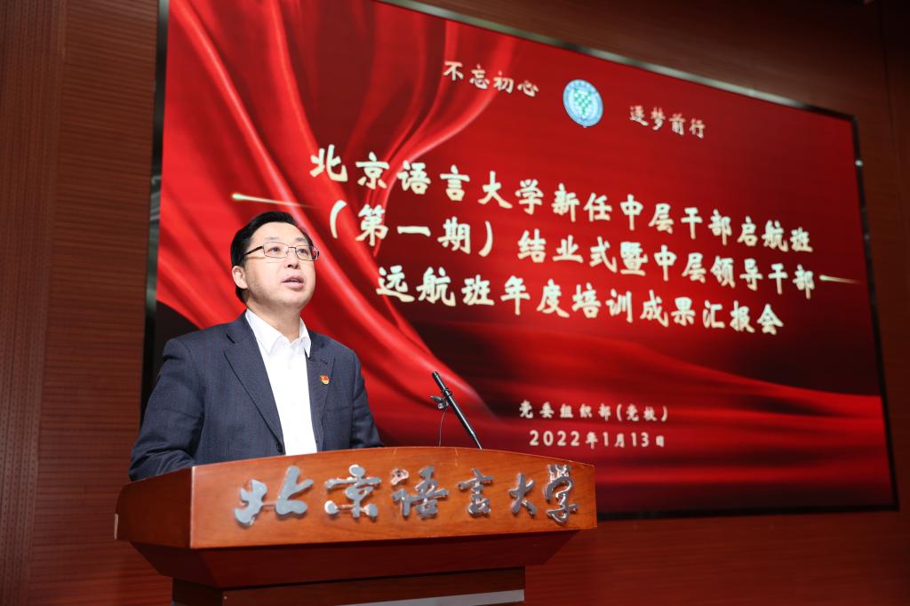 目前,北京语言大学中层干部教育培训已初步建立“新任中层干部启航班、中层正职干部领航班、优秀年轻干部引航班、中层领导干部远航班”4个班次,努力构建从源头培养、重点培养到跟进培养、持续培养的干部教育培训全链条,与每月1期的党务工作创新沙龙以及全年开放的干部网络学院学习班一道,构建起了“分级分类、多措并举、专题常态、线上线下”的干部教育培训体系。今后,北京语言大学将继续努力提高干部教育培训工作的水平,以干部培训助推干部成长,锤炼打造一支“召之即来、来之能战、战之必胜”的高素质专业化中层干部队伍,为加快提升学校治理体系和治理能力现代化水平,加快推进学校各项事业高质量发展提供有力保障。