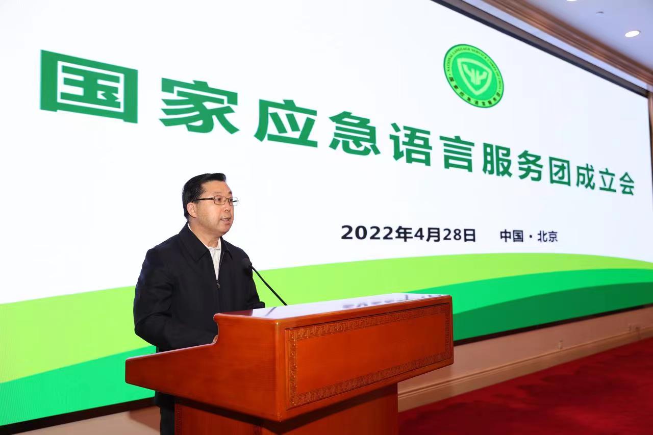 国家应急语言服务团首届理事会理事长、北京语言大学校长刘利宣读发起单位全体会议决议并宣布服务团成立。