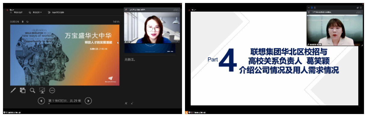 万宝盛华大中华有限公司管理合伙人刘颖从灵活用工、人才寻猎、招聘流程外包PRO和其他人力资源服务四个方面介绍公司情况,同时对公司用人需求进行说明,并表示将进一步加强校企联动,实现互利共赢。联想集团华北区校招与高校关系负责人葛笑颖通过详细数据向与会人员介绍公司概况,指出公司依托人才战略计划,全力打造人才储备库,并表达了希望与北语开展深度合作的意向。京东国际人力资源部人才发展负责人贾安琪从京东集团使命、愿景、价值观和战略定位进行阐述,并表示对后续的校企合作、实习基地搭建充满期待。