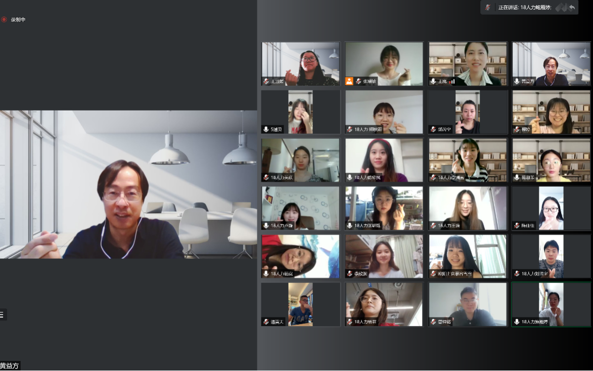 5月24日上午,黄益方副校长作为商学院18级人力资源管理班副班主任参加了“携手青春路,一起向未来”线上主题班会,与同学们深入沟通,亲切交流。班会由班主任王岚老师主持,18级人力班全体同学参加了班会。