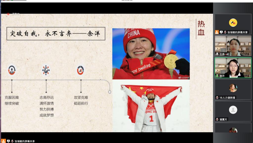 班会在振奋昂扬的《中国共产主义青年团团歌》旋律中拉开帷幕。在“砥砺奋进 青年担当”环节,同学们一同观看了中国共青团成立100周年主题宣传片《了不起的中国青年》,曾祥铭同学就“青年责任与担当”为题发表感想,倡议同学们在平凡中铸就伟大;韦凤雪同学做了“新时代,新青年”主题发言,激励同学们追求卓越,砥砺前行。在“勇敢追梦 奋斗青春”环节,同学们共同上了一堂“青春榜样”思政课:徐梦桃冬奥夺冠背后的故事。余洋同学为大家生动讲述了奥运冠军们为梦想挥洒汗水,突破自我、永不言弃的拼搏精神。回望过去,四年时光收获满满;展望未来,一步一脚印继续彰显青春本色。在“青春不散 未来可期”环节,关联同学和李潇蕾同学发表了毕业季感想,与同学们共同回忆大学四年的成长点滴。