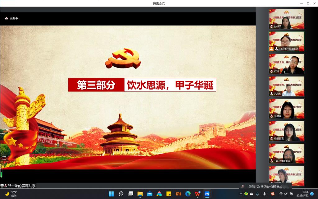 为认真学习领会新时代党的建设总要求,努力贯彻落实近期习近平总书记的重要讲话精神,5月22日晚,校长刘利深入基层,通过线上方式参加了教师教育学院汉语国际教育专业本科生第一党支部“以青春之我,建设青春之国家”主题党日活动。教师教育学院党委书记程娟,团委书记、研究生辅导员马铖,本科生辅导员曹文潇列席。