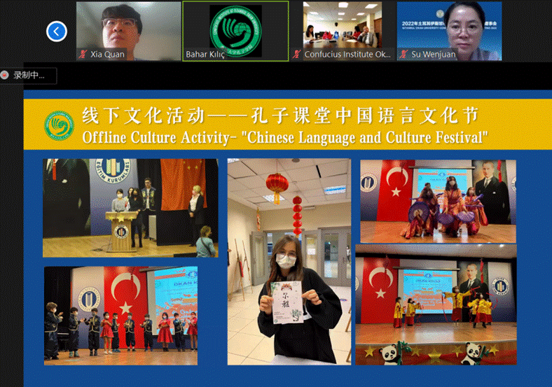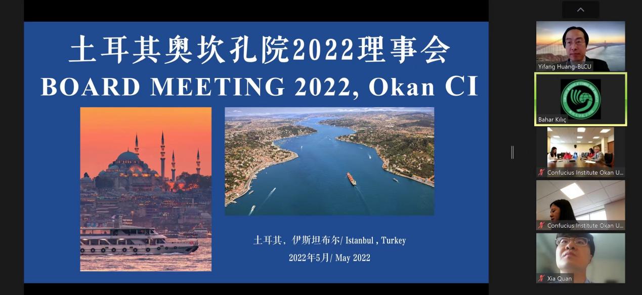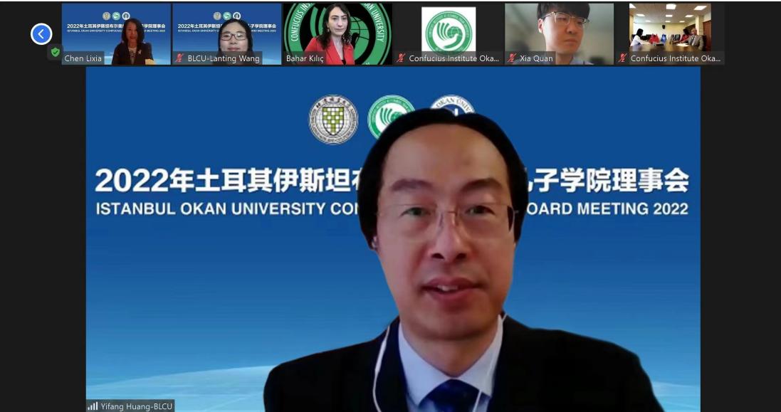 5月25日下午,土耳其伊斯坦布尔奥坎大学孔子学院2022年理事会以视频会议的方式顺利召开。北京语言大学副校长黄益方、国际教育管理处/孔子学院工作处处长陈丽霞,土耳其伊斯坦布尔奥坎大学副校长古纳·古尔索伊(Güner Gürsoy)、孔子学院土方院长李春(Bahar Kılıç)、中方院长王娜娜等理事会成员以及两校相关部门负责人参加会议。