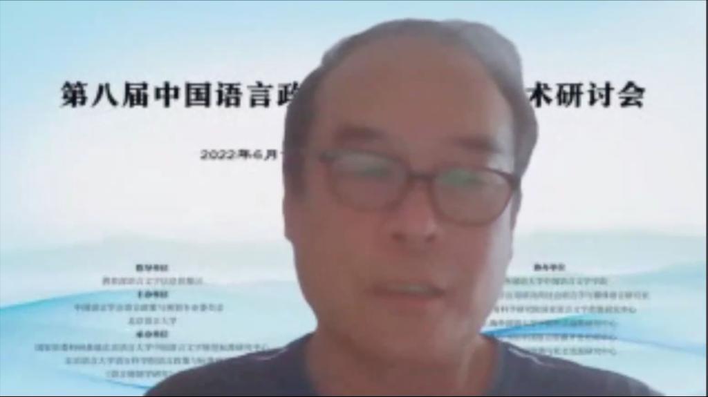 中国语言学会语言政策与规划专业委员会会长、北京语言大学教授李宇明作主旨报告