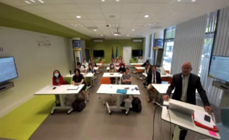 法国格勒诺布尔-阿尔卑斯大学莫妮卡·马斯佩里副教授和特里西娅·比亚吉奥蒂工程师,则对IDEFI语言培训创新项目的设计背景、运行机制、教学成效等进行了专题汇报,系统介绍了两个机制——韵律学和口语产出(THEMPPO)、语言评估系统(SELF)的构成要素及在促进语言培训上的积极作用。