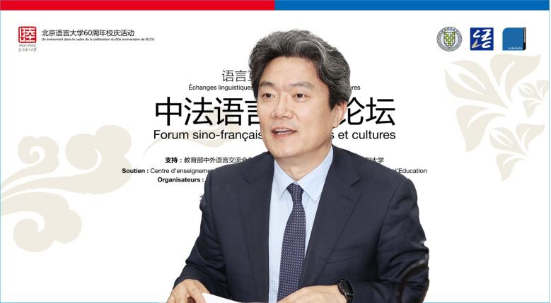 北京语言大学校长刘利在致辞中指出,铺好语言交流之路,创新中外语言文化交流模式,助力架设更加开放、包容的文化交流与文明互鉴之桥,培养更多中外人文交流的建设者与友好使者,是大学的重要使命与时代担当。依托中法教育合作交流优势以及法国中文国际班、中法语言政策与规划国际研讨会等中法高级别人文交流项目,北京语言大学在推动中法人文交流建设发展中发挥了独特作用。他就大学如何更好发挥在中外人文交流,尤其是中法人文交流中的引领作用,分享了三点思考:一是发挥大学的育人功能,为中法人文交流培养更多通识型与精英型人才,进一步深化校际间合作与高校联盟间的双边多边教育合作,加强高校间优势学科与专业的联通与合作,构建多校园融通培养等模式为特色的多层次人才培养体系; 二是发挥大学的文化传承引领作用,拓展中法语言互通与文化互解,在观念和方法上进行路径创新,运用新媒体手段创新语言学习模式与课程,研发更加符合年龄和学习特点与需求的新型教材与教学资源等,以网络化、智能化推动优质语言文化资源的共享,扩大丰富文化交流的渠道与途径; 三是发挥高校的科学研究资源与平台优势,推进中法人文交流的成果共享共建,拓宽中法科研合作平台,产出学术专著、政策咨询、社会评论等多样化的研究成果,为促进中法两个文明大国之间政策沟通协调、交流互鉴、共同发展等提供智力支持。
