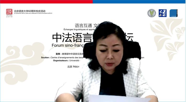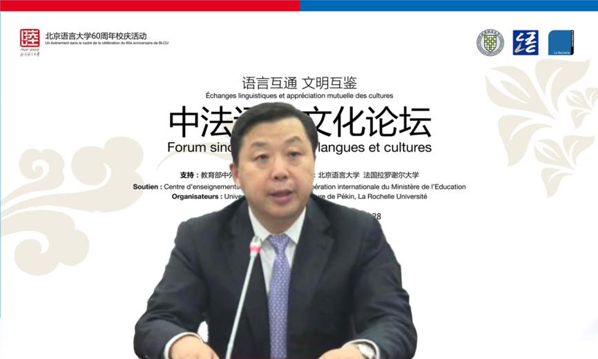 6月28日,中法语言文化论坛在北京语言大学成功举行。本次论坛由中国教育部中外语言交流合作中心支持,北京语言大学和法国拉罗谢尔大学共同主办,教育部中外语言交流合作中心国际中文教育实践与研究基地(北京语言大学)承办。中国教育部中外语言交流合作中心副主任静炜、北京语言大学校长刘利、法国拉罗谢尔大学校长让-马克·奥杰出席开幕式并致辞,北京语言大学副校长张宝钧主持论坛,国际中文教育实践与研究基地执行主任陈丽霞、副主任田鑫以及中法语言、文化、教育等领域专家学者和中外师生百余人通过线上线下方式出席论坛。