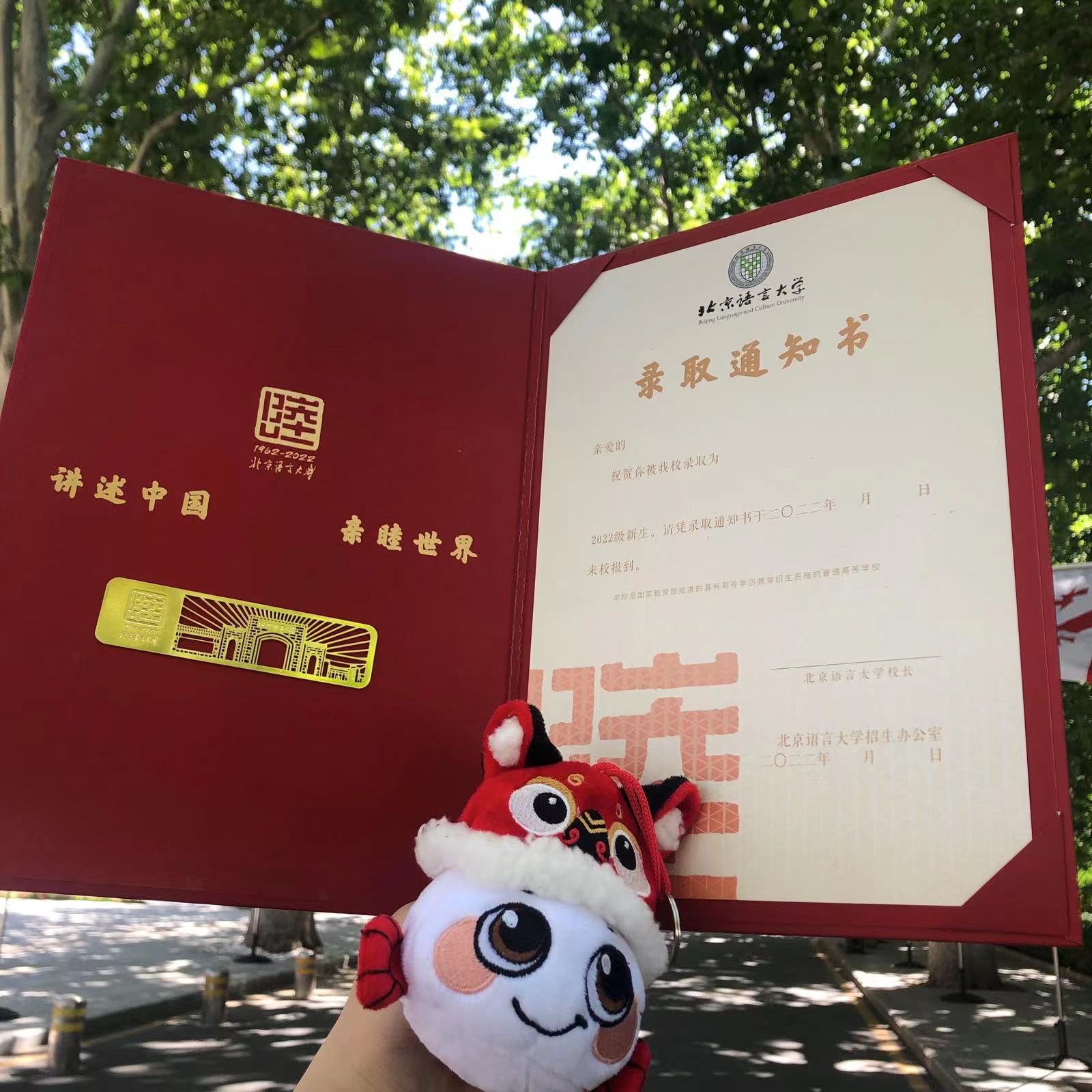 7月7日,北京市2022年第一封普招录取通知书从北京语言大学发出。录取通知书的主人是来自北京市第八十中学的田栋森同学,通过提前批次以616分的成绩录取到法语专业。