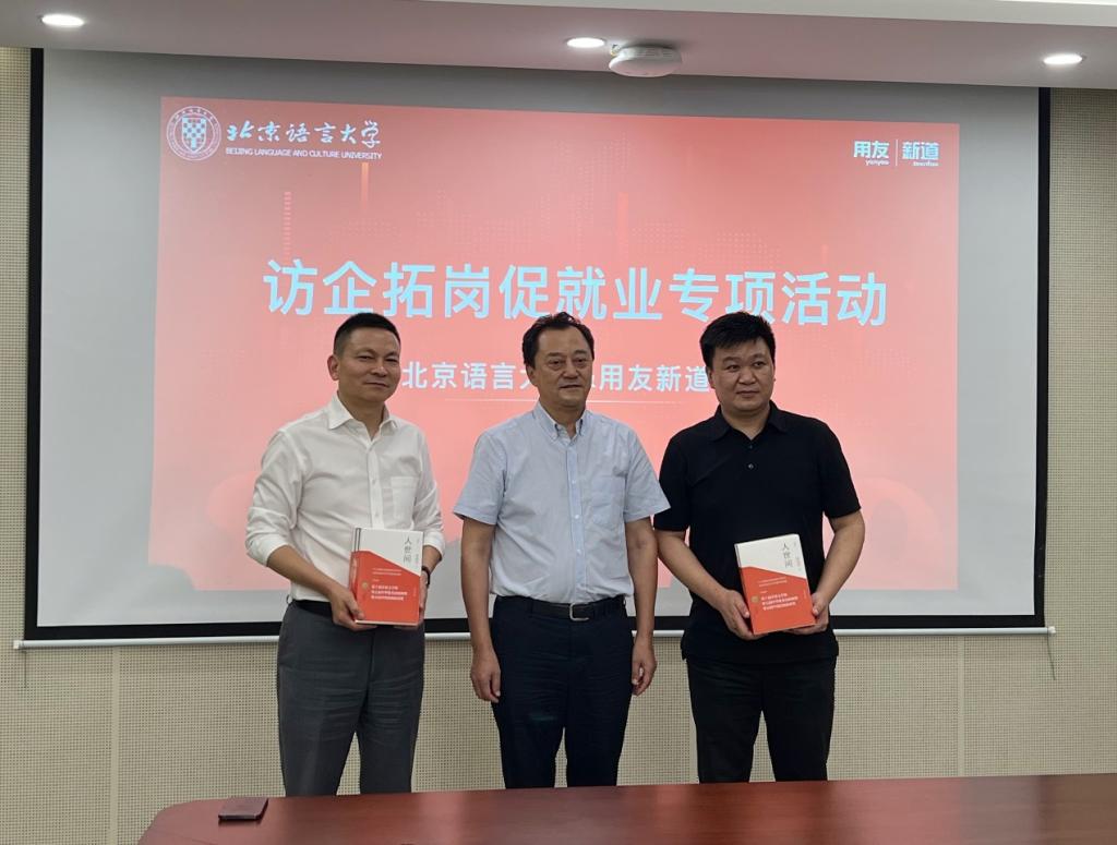 在新道科技副总裁田鹏、北京分公司总经理程帅的陪同下,倪海东书记一行参观了用友数智企业体验馆。在座谈研讨环节,倪海东书记对用友新道科技的热情接待和对学校工作的支持表示感谢,并介绍了我校办学历史和近年来学校发展情况及此次走访目的:一是以“高校书记校长访企拓岗”专项行动为契机,充分深挖资源,广阔就业渠道,搭建实践平台,精准对接供需,不断加强与用友新道科技等企业的沟通交流,为毕业生实现更高质量就业保驾护航。二是以企业需求为导向,深度了解分析行业发展趋势和人才需求形势,充分吸收用人单位的意见建议,为学校学科专业调整、人才培养方案制定、就业指导服务提供依据,不断增强人才培养的针对性和适应性。三是以深层次校企合作为目标,大力推动校企在产教融合、科技创新、实习基地建设等方面进程,全方位拓宽合作空间,构建可持续发展的战略合作关系,实现资源互用,利益共享。倪海东书记期待今后与各企业间保持密切交流,充分发挥校企优势,共建校企育人命运共同体,为服务国家发展建设贡献力量。