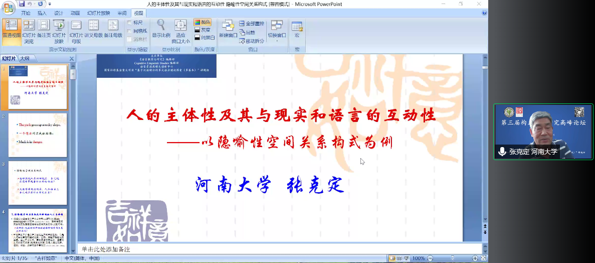 最后,文旭教授饱含深情地呼吁,外语界和汉语界是学术研究的一家人,期待学界通力合作,立足汉语,创造自己的理论,并积极走向世界,与世界对话。