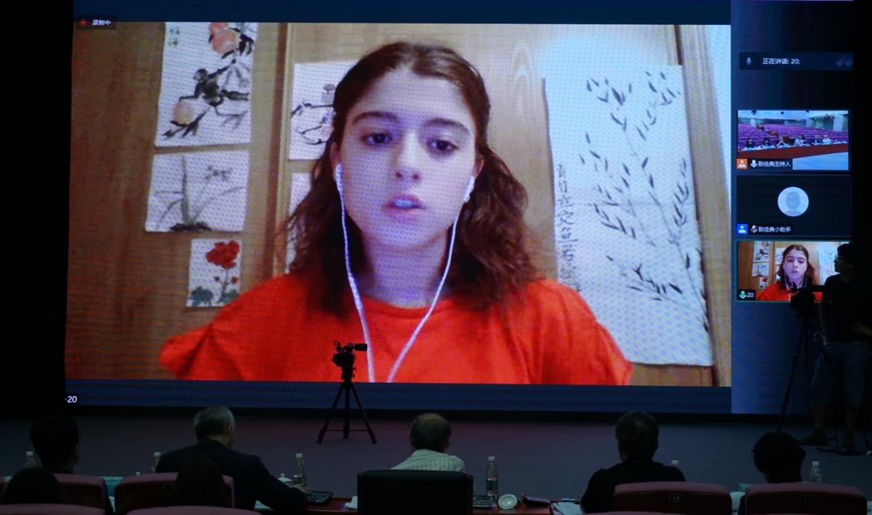 第五届“致经典”双语诵读会选拔环节上国际选手光洁进行展示