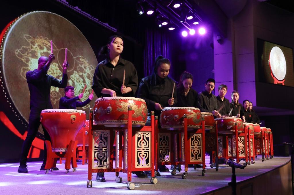 中外学生在论坛开幕式上表演鼓乐《象王行》