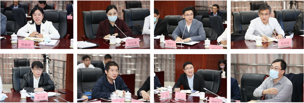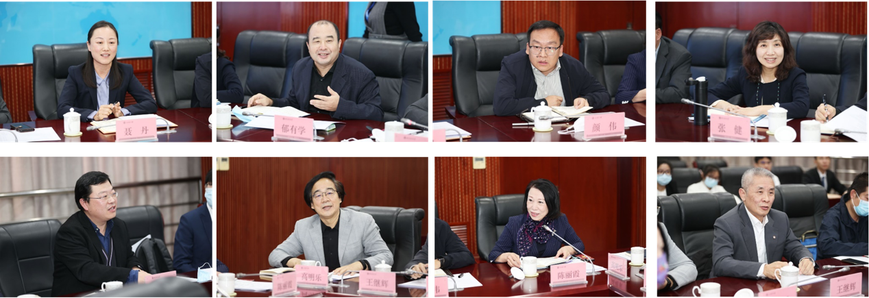 中国外文局计划财务部主任赵丽君、副主任杨秀端、干部张云阁,国际合作部主任刘双燕,人事部主任杨建平,当代中国与世界研究院对外话语创新研究中心主任范大祺、副主任丁一、中国国际图书贸易集团战略规划部经理郭伟先后发言。他们高度肯定了北语国家语言服务出口基地建设进展,表示将在政策制定、产学合作、基地后续建设等方面加强双方合作;希望与北语在国际论坛、重大活动、海外或驻外使领馆博物馆、翻译实践等方面进行全方位合作;希望从人才建设的角度,把北语在语言服务学科领域的理论同外文局的实践紧密结合,通过产教融合等方式推动落实后续工作;希望在国家语言服务出口基地专报和学术期刊等方面,与我校开展更多合作;建议未来基地建设要做好产能供需、数据资源、技术手段和人才资源供需对接,继续开展语言服务标准制定、产学研对接、更好推动语言服务为中国企业在国际舞台展现实力赋能。
