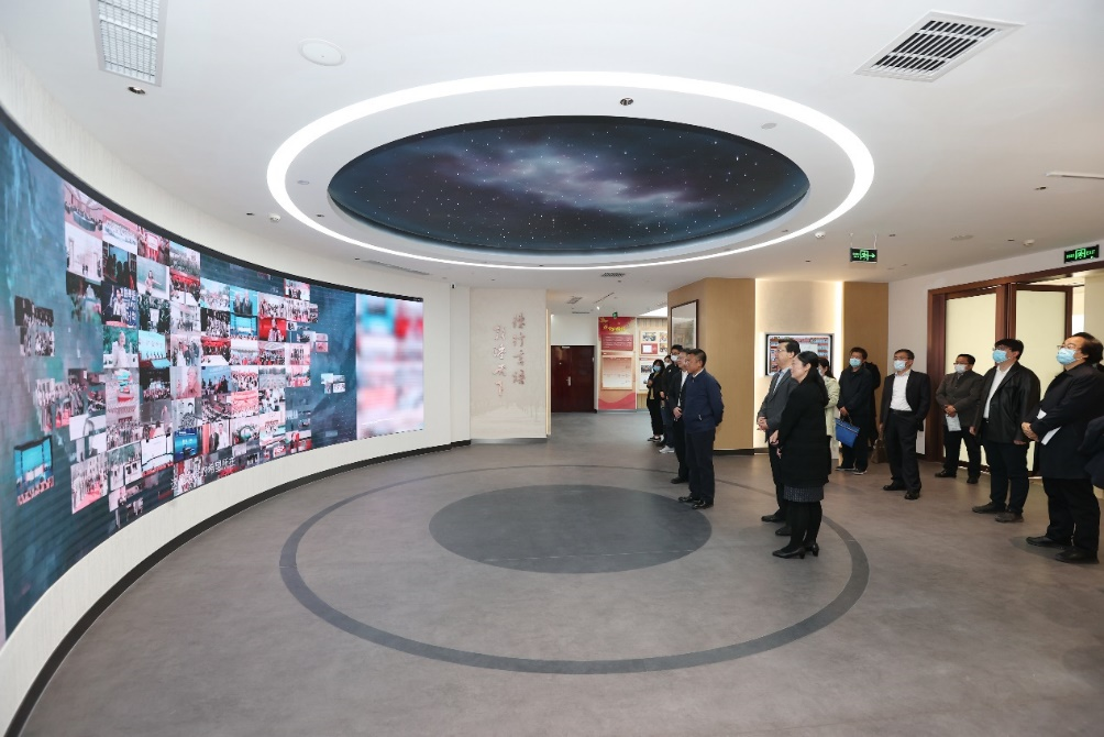 调研会结束后,刘大为副局长一行在刘校长等校领导的陪同下,兴致勃勃地参观了新落成的校史馆,并集体合影留念。