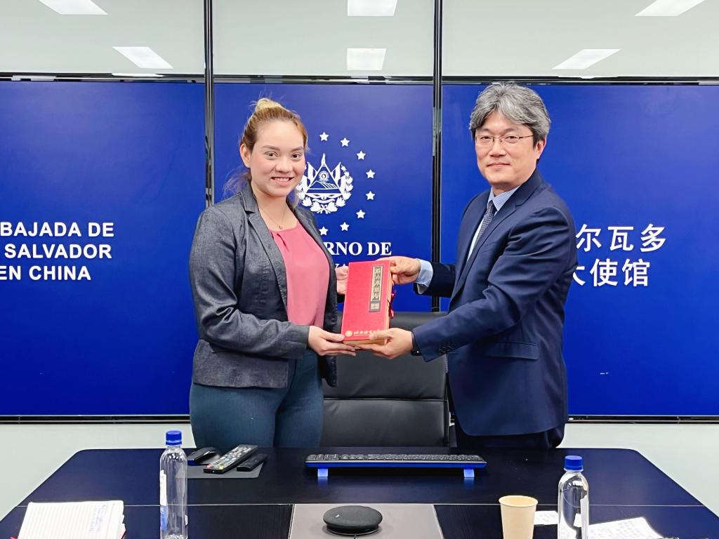 参加本次会谈还有萨尔瓦多共和国驻华大使馆公使衔参赞卡罗琳娜·萨拉拉女士,商务参赞佩德罗·哈耶姆先生,大使秘书、翻译刘璇女士。我方参加人员分别是国际合作与交流处处长马铁石和国际学生招生处处长周鑫。