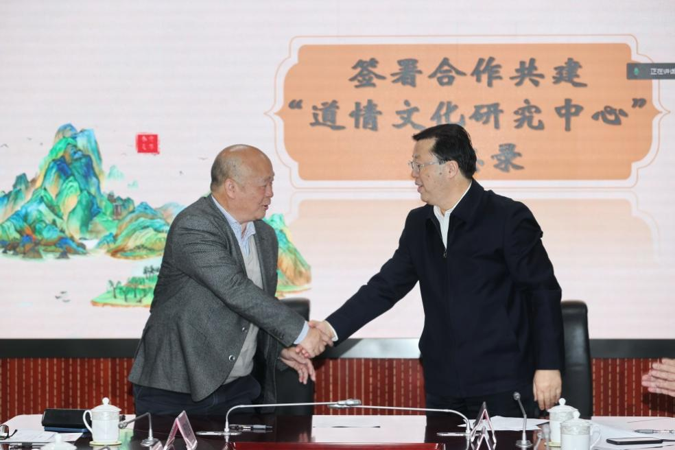 揭牌仪式上,刘利校长与邱运华书记还签署了双方合作共建“道情文化研究中心”备忘录。揭牌仪式后,新成立的“道情文化研究中心”举行了以“道情文化与民间文艺”为主题的学术研讨会。中国文联民间文艺艺术中心研究员刘德伟,北京大学教授廖可斌、潘建国,中国人民大学教授谷曙光,中国戏曲学院教授吴新苗以及北京语言大学教授韩经太、方铭、郭鹏、张华、刘宗迪、张廷银等,围绕道情的历史地位、道情的现实境况、道情文化研究的中心任务、道情文化研究与地方发展及学科建设的关系等,展开了充分热烈的讨论,形成了一系列有价值的共识。