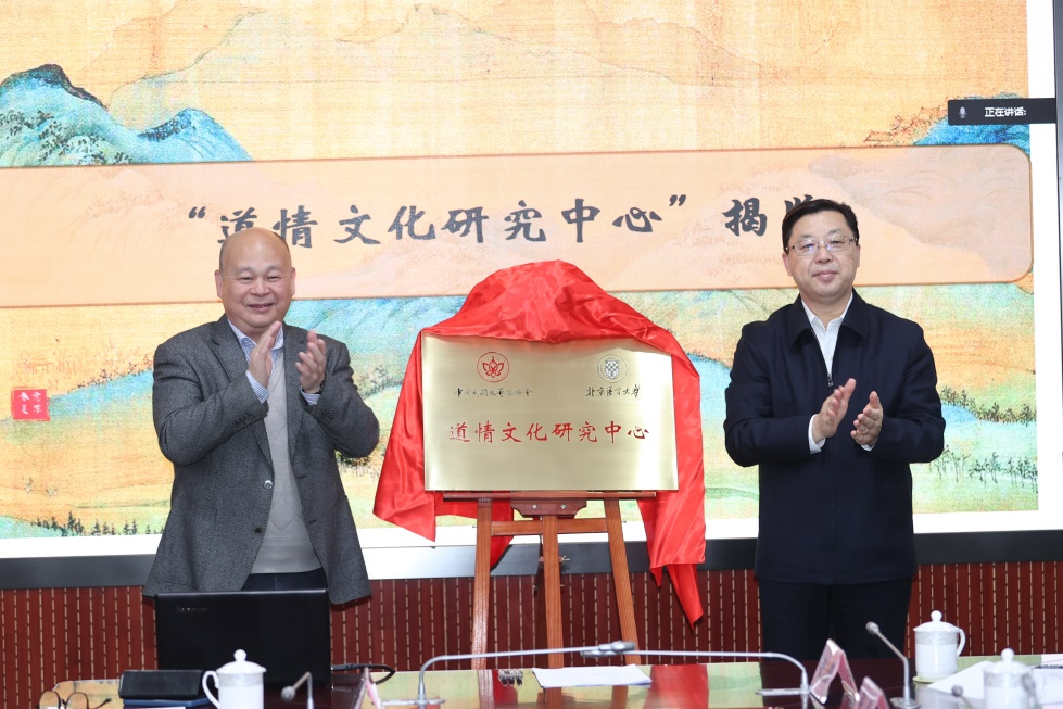 “道情文化研究中心”由中国民间文艺家协会和北京语言大学合作共建。中国文联民间文艺艺术中心主任刘德伟、北京语言大学校长助理、人事处处长郁有学分别宣读中国民协和北语关于成立“道情文化研究中心”的决定和通知。北京语言大学校长刘利、中国民间文艺家协会分党组书记邱运华共同为“道情文化研究中心”揭牌并先后致辞。