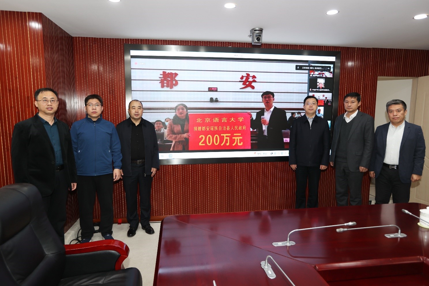 会上还举行了北京语言大学对口都安的200万资金捐赠仪式、北京语言大学出版社有限公司资金及图书的捐赠仪式、中国少年儿童新闻出版总社图书捐赠仪式以及北京语言大学、都安瑶族自治县教育局、新东方前途出国咨询有限公司乡村振兴合作协议的签订仪式。