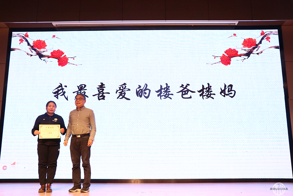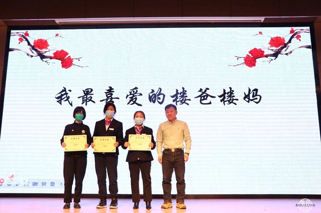 最后,主持人公布了“我最喜爱的楼爸楼妈”,“最美保洁员” 以及本次寝室风采大赛决赛的评选结果,并由与会嘉宾为他们颁奖。至此,第十届“雅•尚•睦”公寓文化节颁奖典礼暨寝室风采大赛决赛圆满结束。