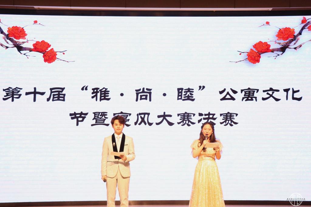 3月29日晚6点半,第十届“雅•尚•睦”公寓文化节颁奖典礼暨寝室风采大赛决赛在教一楼209拉开帷幕。本次活动由后勤服务集团、校团委、学生处、保卫处以及校工会联合主办,校学生会承办。北京语言大学党委常委、副校长黄益方,党委宣传部常务副部长黄展,后勤服务集团党总支书记谢刚,党委学工部副部长(主持工作)武玉洲,教师教育学院党委书记程娟,心理学院党总支书记王旭,商学院党委副书记王慧媛,保卫处副处长张红,校团委书记张晴、副书记邹泺铱,后勤服务集团楼宇服务中心主任韩俊鹏,保卫处内保科副科长郑杰出席本次活动。各十强宿舍指导教师也到场观赛。