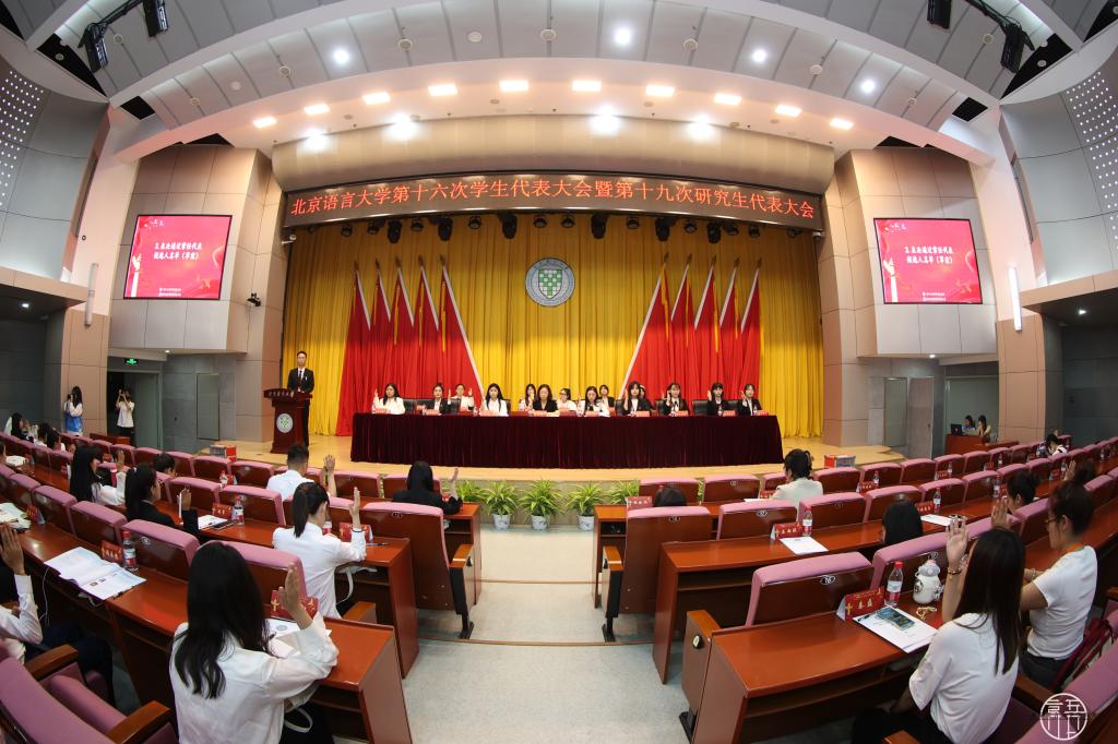 北京语言大学第十六次学生代表大会暨第十九次研究生代表大会在《歌唱祖国》激昂的旋律中胜利闭幕。
