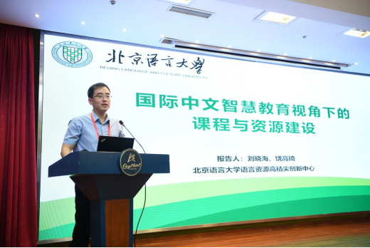 刘晓海副主任以“国际中文智慧教育视角下的课程与资源建设”为题做大会发言,他指出,北京语言大学国际中文智慧教育工程将通过改革,构建全新的面向全球的国际中文智慧教育体系,为世界中文学习者和教师提供不受时空限制的全周期、全流程、智能化的语言教育平台、产品和服务,打造符合人类语言习得规律和中文教学规律的网络化、智能化、国际化的智慧教育生态。在助力“理解当代中国”国际中文系列教材及课程建设方面,将配合虚拟教研室,充分发挥智慧教学系统的作用,为教师和学习者提供更好的教学、学习工具和相关资源。