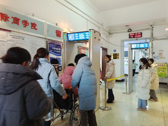 本次研考入场新增智能安检门检查环节,考生进入考点后,须通过安全检查方可进入封闭管理区域参加考试。为方便考生,学校在考试封闭管理区的2个入口处分别设置智能安检门,并于考前专门进行测试演练,为合理、高效安检做好充分准备。安检中,对于特殊考生实施一类一策安检流程,切实防范考生将任何非考试用品带入考场,保障考试公平、公正。