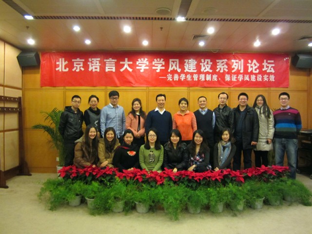 12月11日下午,北京语言大学学风建设系列论坛之“完善学生管理制度,保证学风建设实效”论坛在会议中心第一会议室隆重举行。校党委赵旻副书记出席论坛,教务处、学生处、团委等职能部门负责人,各中国学生学院主管学生工作领导以及全体辅导员参加论坛。