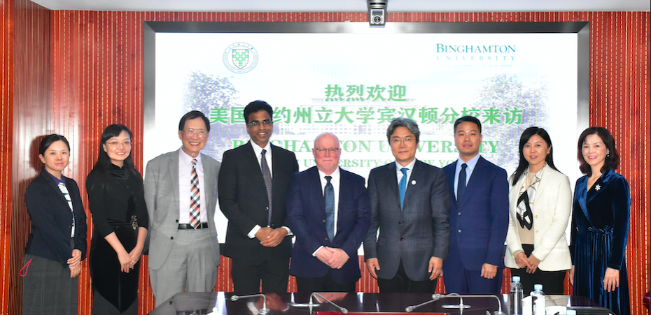 10月25日下午,张宝钧副校长在综合楼909会见了美国纽约州立大学宾汉顿分校常务副校长兼教务长唐纳德·霍尔(Donald E. Hall)博士、负责国际教育和全球事务的副教务长马杜(Madhusudhan Govindaraju)博士和纽约州立大学杰出教授陈祖言博士一行。
