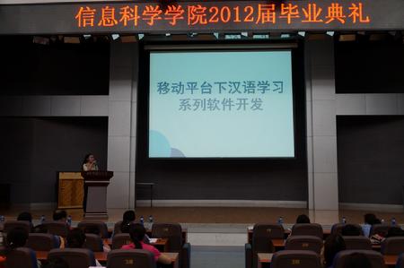 2012年6月26日下午,信息科学学院2012届毕业典礼暨2012年期末大会在主楼209隆重举行。校团委,教务处,研究生院老师,信息科学学院领导,以及学院全体教师和学院全体本科生、研究生共同纪念了这难忘的时刻。