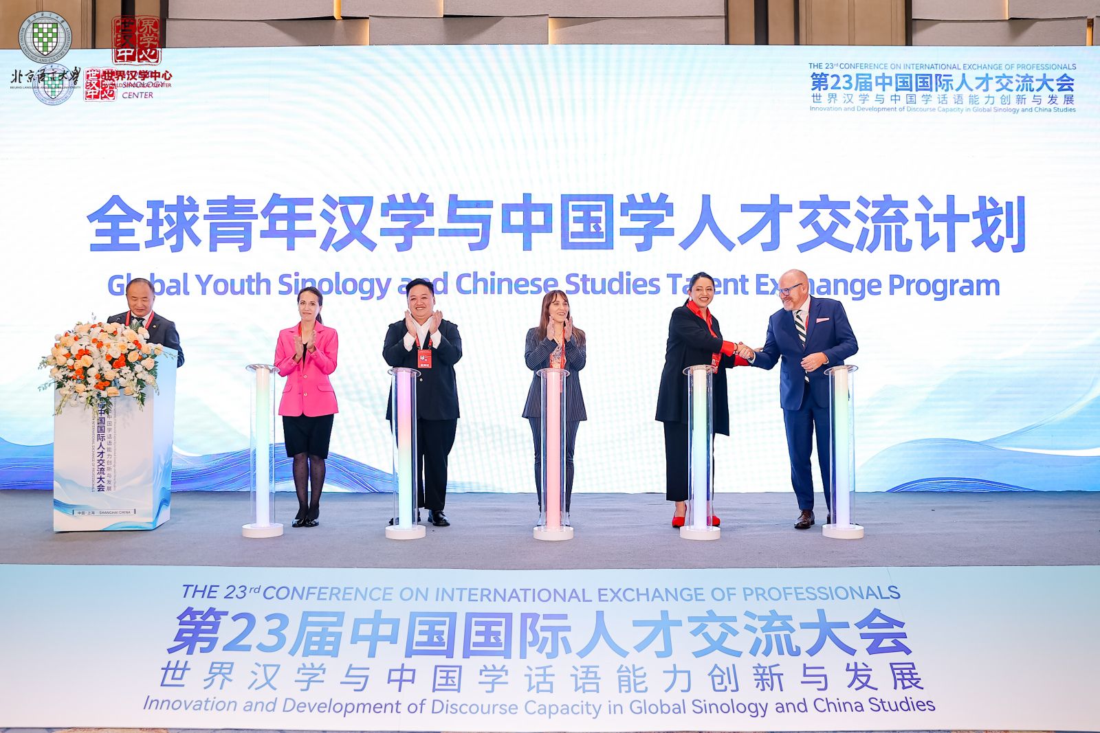 北语新闻网10月23日电(通讯员 吴文志)10月21日,作为全国规模最大、规格最高的国际人才展洽平台,第23届中国国际人才交流大会在上海开幕。国务委员谌贻琴发表视频讲话并宣布大会开幕。人力资源和社会保障部部长王晓萍,上海市委常委、常务副市长吴伟致辞。校长段鹏和我校世界汉学中心组织的包括3位国际院士在内的47个国家和地区的120多位汉学家、中国研究专家共同参会,通过一系列学术交流与多样化人才合作,推动世界汉学与中国学研究的多元共生与创新表达。