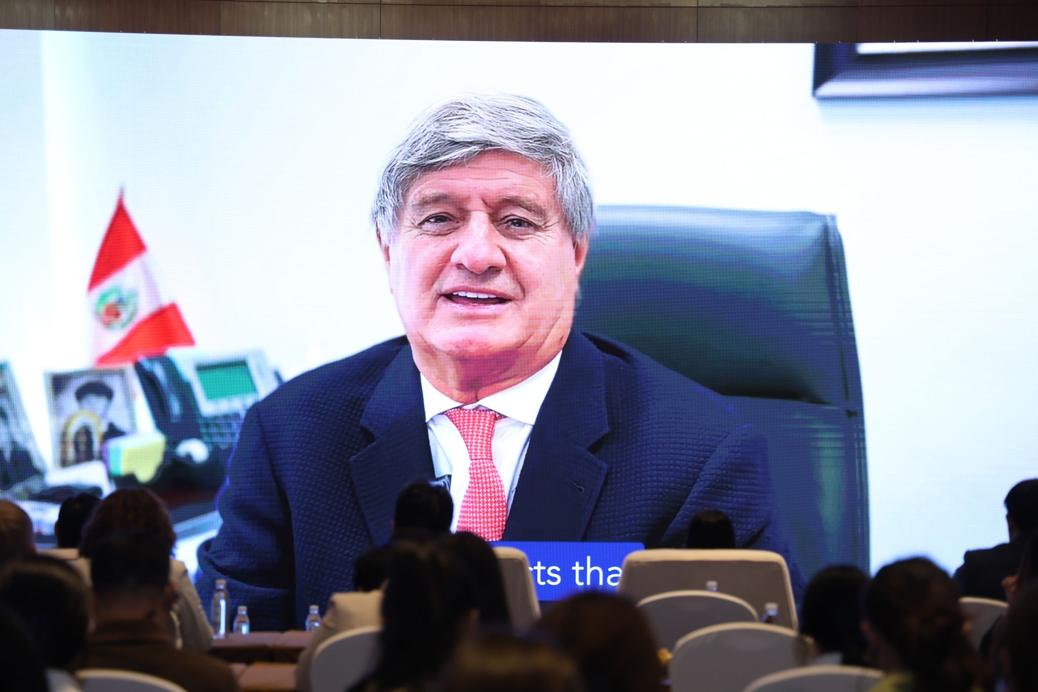 秘鲁前副总统、圣伊格纳西奥德洛约拉大学创始人劳尔·迪耶斯·坎赛科阁下在致辞中表示,在全球化时代,人才发掘与培养是最为重要的目标,数字化的加速转型也已经成为塑造未来最重要的工具之一。他坚信,教育已被证明是摆脱贫困、重塑人类文明的唯一途径。秘鲁正全力投入国家建设,积极推动教育发展,大力推进教育公平与区域合作,为青年创造连接世界、把握机遇的通道。他期待与会的各经济体通过论坛寻找更有价值的项目,搭建人才交流机会,为人民和青年创造一切可能的发展机遇,带来更大福祉。