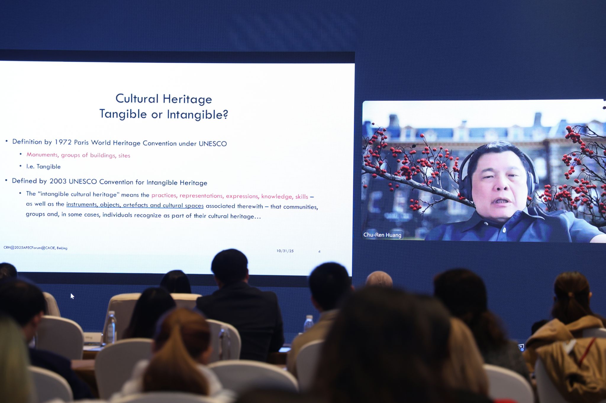 国际计算语言学委员会终身会士,香港理工大学中文及双语学系讲座教授黄居仁以《文化传承与生态记忆》为题,阐释科技在文化遗产保护与生态智慧传承中的关键作用。他介绍了利用科技分析古代文献,建立生态知识图谱的具体实践,实现了文学、生态与科技的融合,并由此提出“生态记忆”概念。黄教授呼吁亚太地区加强教育合作,利用人工智能等技术挖掘历史文献中的生态信息;将传统生态知识纳入现代教育体系;建立跨国合作机制,推动文化遗产在应对气候变化、促进可持续发展中发挥更大作用。