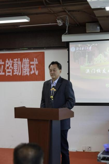 倪海东书记首先致辞,他对澳门校友之家的成立表示热烈祝贺,并向长期以来关心、支持母校发展的澳门校友致以诚挚问候。倪书记指出,北语和澳门的联系和交往非常久远,在澳门回归前后,北语与当时的行政暨公职司(现行政暨公职局)合作,为澳门特区政府培训了大批公务员,为澳门回归做出了贡献。北语与澳门的大学和教育机构也有合作交流。校友是大学最宝贵的财富,澳门校友会的成立,标志着母校与在澳校友的联系迈入制度化、常态化的新阶段,将为加强北语与澳门的联系,推动粤港澳大湾区高等教育协作、科技创新与人才交流注入新动能。倪书记向嘉宾和澳门校友们详细介绍了北语近年在学科建设、人才培养、国际交流等方面的发展状况,希望年长的校友们发挥在社会上的影响力,年轻的校友们发扬蒸蒸日上的活力,老中青校友携手,为北语与澳门的发展而共同努力。