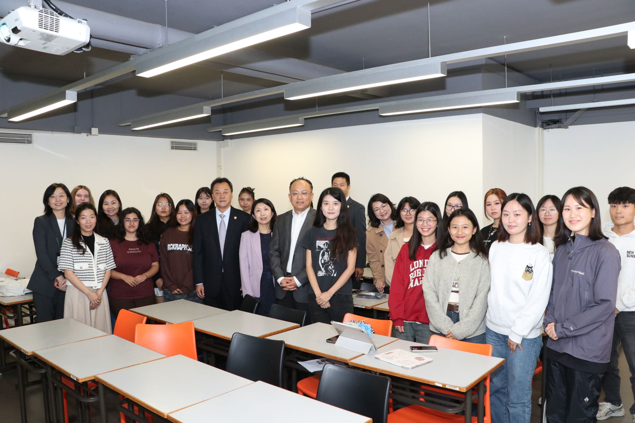 会谈结束后,代表团一行走进澳门城市大学课堂,亲切看望正在城大交流学习的我校国际学生及中国内地学生。倪海东书记与同学们亲切交流,详细了解他们的学习生活近况。国际中文学院、新闻传播学院、应用中文学院、汉学与中国学学院的16名来自缅甸、蒙古、日本、韩国哈萨克斯坦等国国际学生汇报了学习收获;另有来自教师教育学院、文学院的3名中国内地学生也正于城大交流学习。