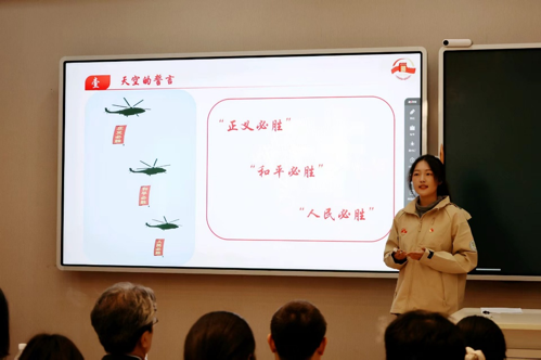 随后,李子文、王韵迪、刘诗月、林昱晔、吴其璇、王振泽六位同学依次分享交流。李子文以《当我的青春,汇入时代的和声》为题,结合合唱与阅兵经历,阐述青春融入时代的深刻感悟;王韵迪在《接过那束光》中,分享了从忠诚与担当之光中汲取的奋进力量;刘诗月通过《历史,从未如此贴近》,讲述追寻家族抗战历史、守护民族记忆的心路;林昱晔在《这个夏天,我看见的三束光》中,诠释了学校、同伴与历史共谱的时代和声;吴其璇以《天空与大地教会我的事》,分享了志愿服务中领悟的信念重量与平凡坚守的价值;王振泽则在《那次,我把自己“调岗”了八十米》中,讲述了从“见证者”到“守护者”的成长蜕变。