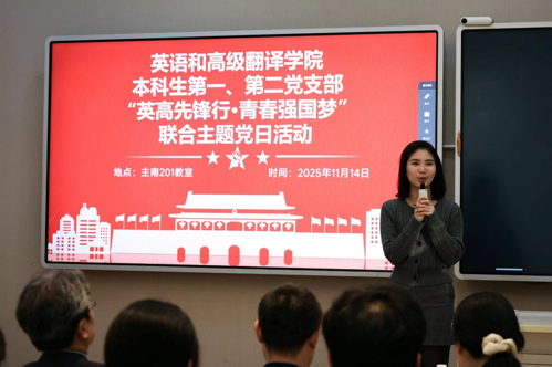 北语新闻网11月20日电(通讯员 李子文 范徐一真 摄影 陈鹏翰)为引导青年党员将青春理想融入时代洪流,践行强国使命,近日,英语和高级翻译学院本科生第一、第二党支部在主南201教室联合开展“英高先锋行·青春强国梦”主题党日活动。学校党委常委、副校长张宝钧出席活动,支部全体党员及入党积极分子代表共同参与。